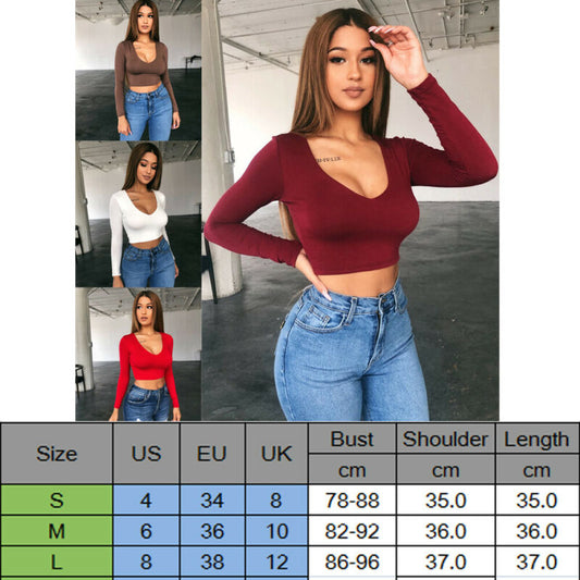 V Neck Cut Out Crop Top Women With Sleeve Gloves