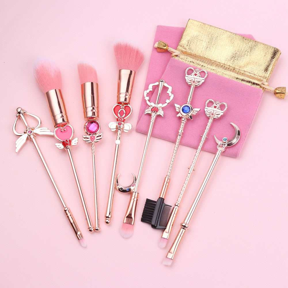 Kawaii Sailor Moon Makeup Brush Set with Cute Pink Pouch