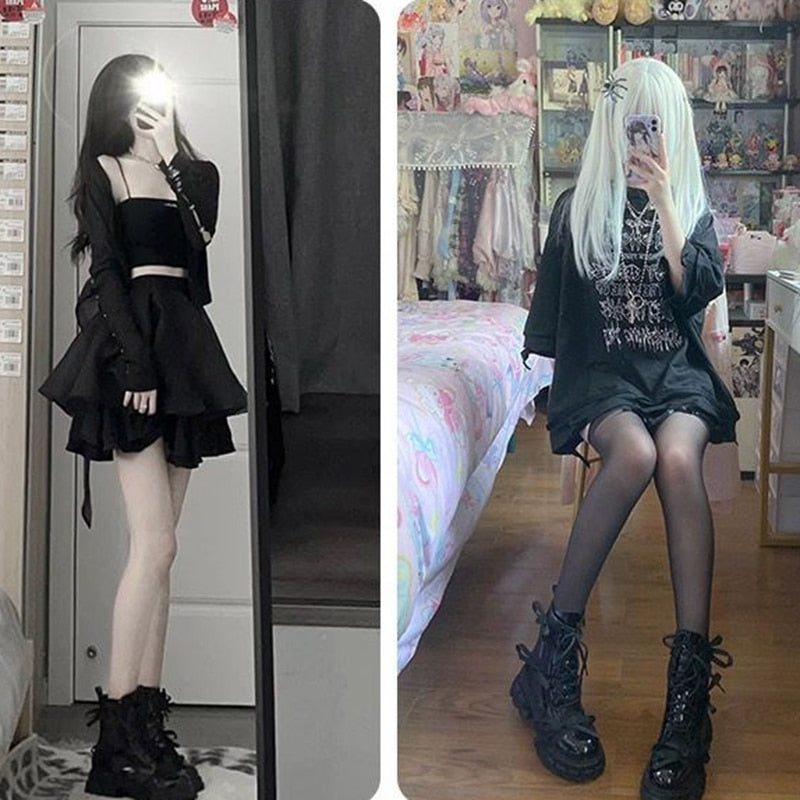 Mesh Motorcycle Platform Ankle Boots