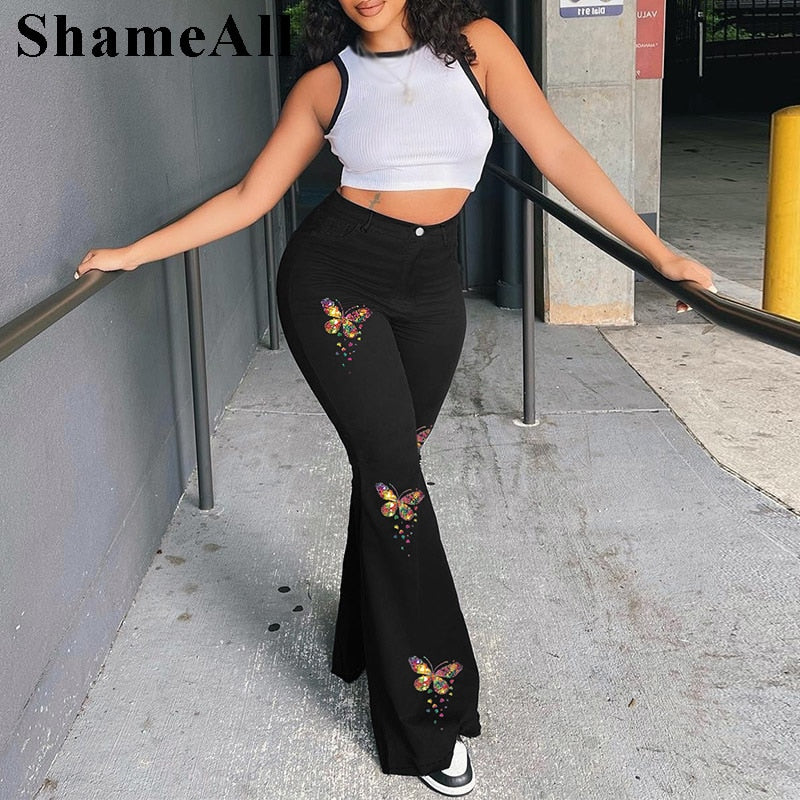 Plus Size Punk Style Curve Skinny Flare Jeans