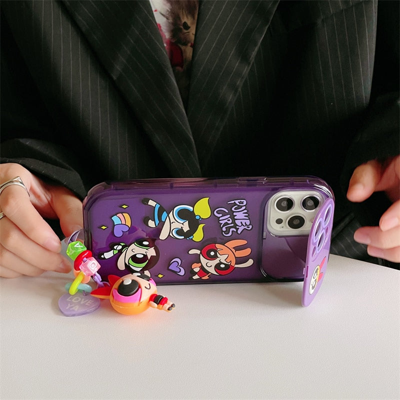 PowerPuff Girls Cute Cartoon Pendant Flip Mirror Phone Case